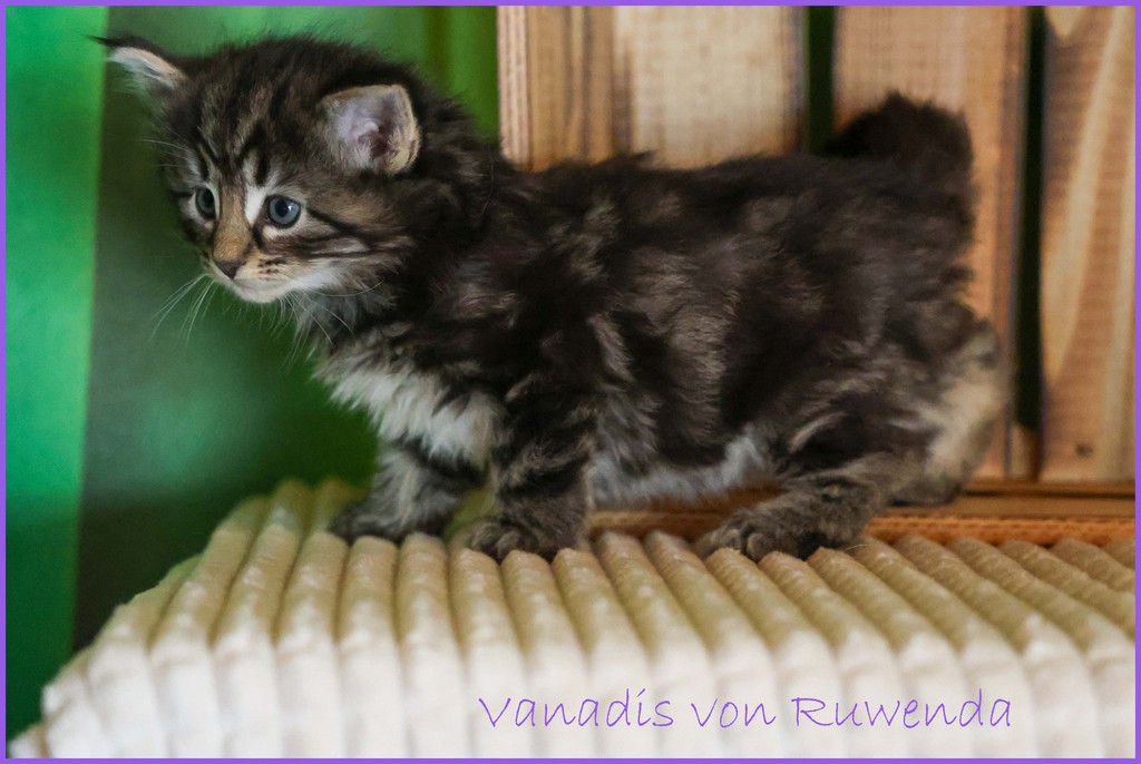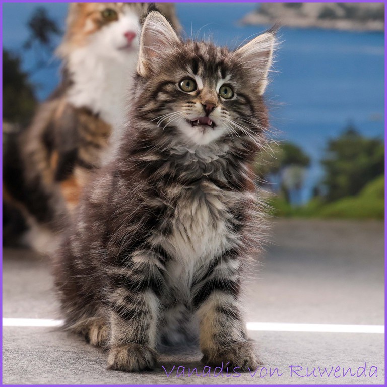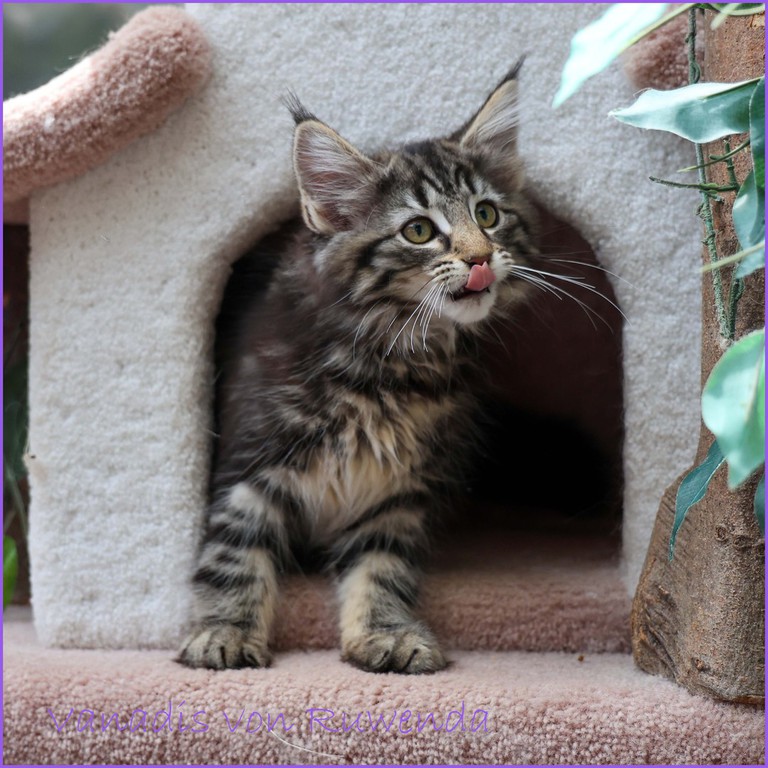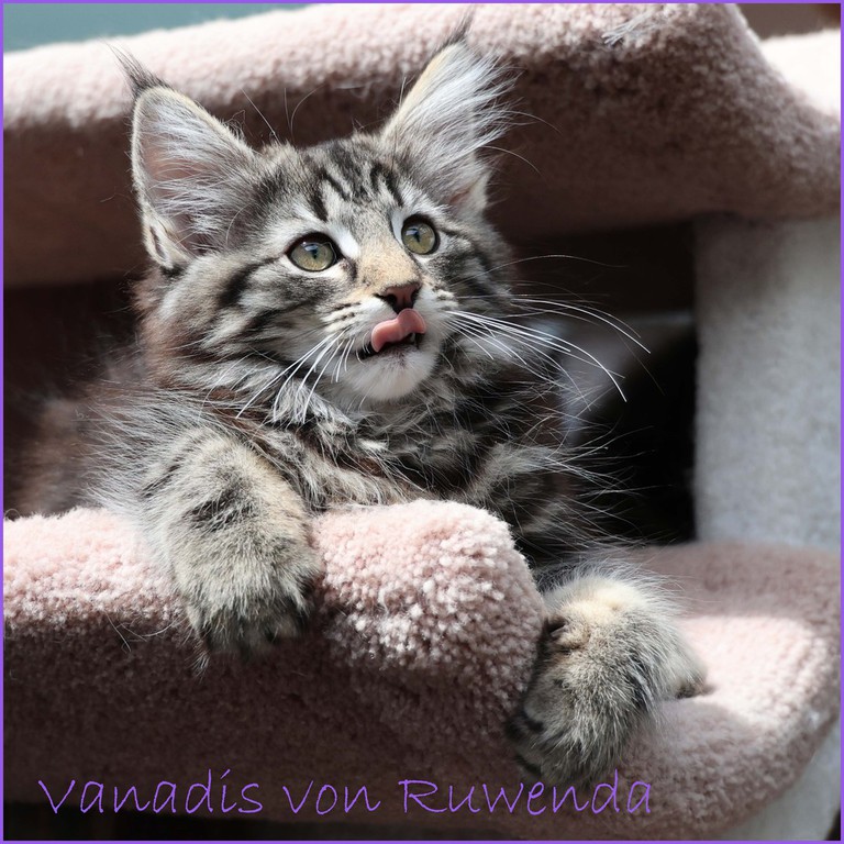 Schon immer sind wir Fans von black-tabby Katzen mit der Classic-Zeichnung. Daher haben wir aus der letzten Verpaarung von unserer Loreley Venadis Mama Sabrina behalten. Eine bezaubernde Katzendame mit weißen Söcken und eine ganz wunderbare Mama.